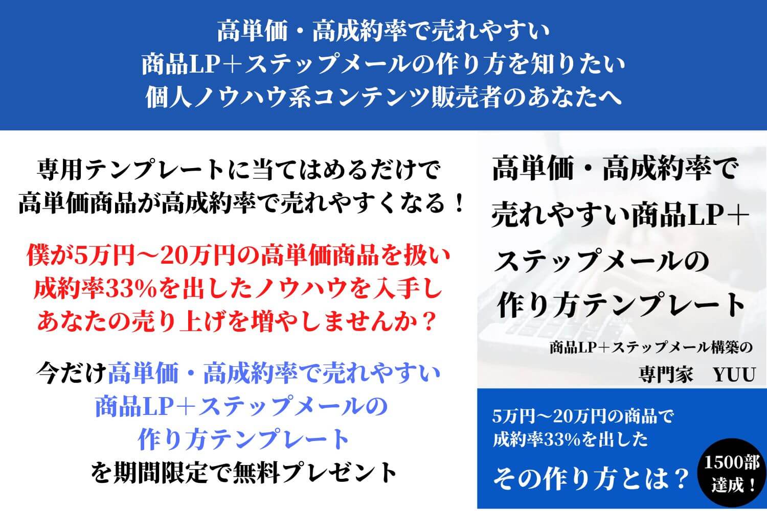①「高単価・高成約率で売れやすい商品LP+ステップメールの作り方テンプレート!」