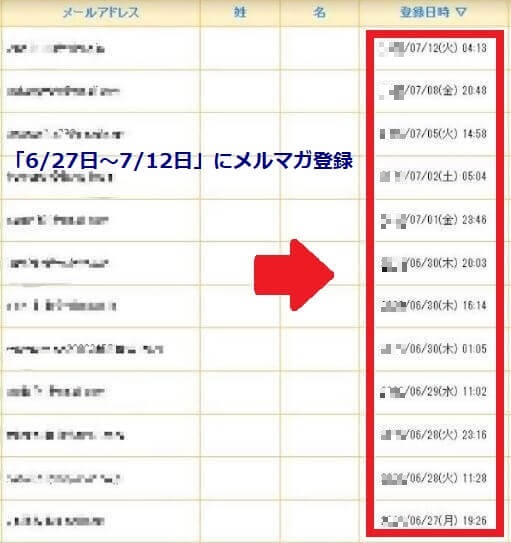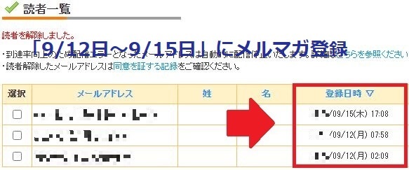 以下の画像のメルマガ読者の総数が3人しかいないのは、「成約率のデータ」(5万円の商品の成約を取る際に何人のメルマガ読者が居れば売れるのか?)を取る為に新規で作ったシナリオだからです。
