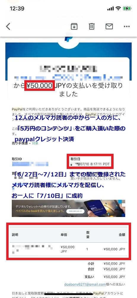 また、無料レポート経由では「12人のお客」(メルマガ読者)から、その内の一人の方から5万円のコンテンツの成約を頂きました。